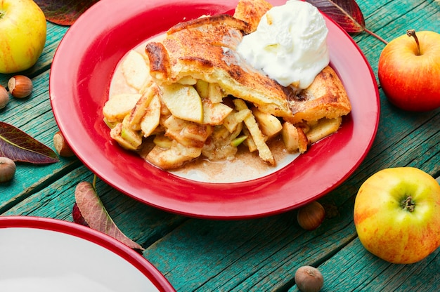 Jabłka zapiekane pod kruszonką z lodami waniliowymi