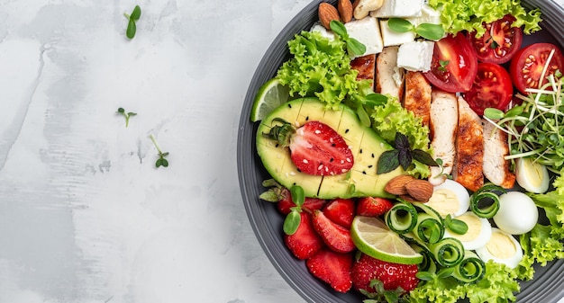 Włączaj różne grupy produktów: Staraj się na każdym talerzu umieszczać produkty z różnych grup – białka (mięso, ryby, rośliny strączkowe), węglowodany złożone (pełnoziarniste pieczywo, kasze, ryż) oraz zdrowe tłuszcze (oliwa z oliwek, awokado, orzechy).